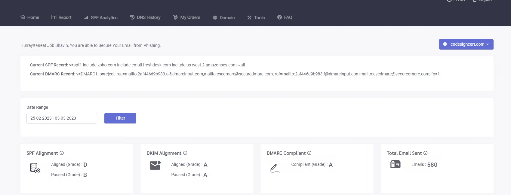 What do you like best about SimpleDMARC?The ui is really simple and easy to understand. If we look at the dashboard they have given plenty of reports and analytics to look at for knowing if your domain is secured or not!What do you dislike about SimpleDMARC?It has DNS history which that could have been done a little better. Other than that all things are relevant and upto the mark.What problems is SimpleDMARC solving and how is that benefiting you?It's protecting your domain and emails again phishing attacks and making your domain authority increase with daily checks