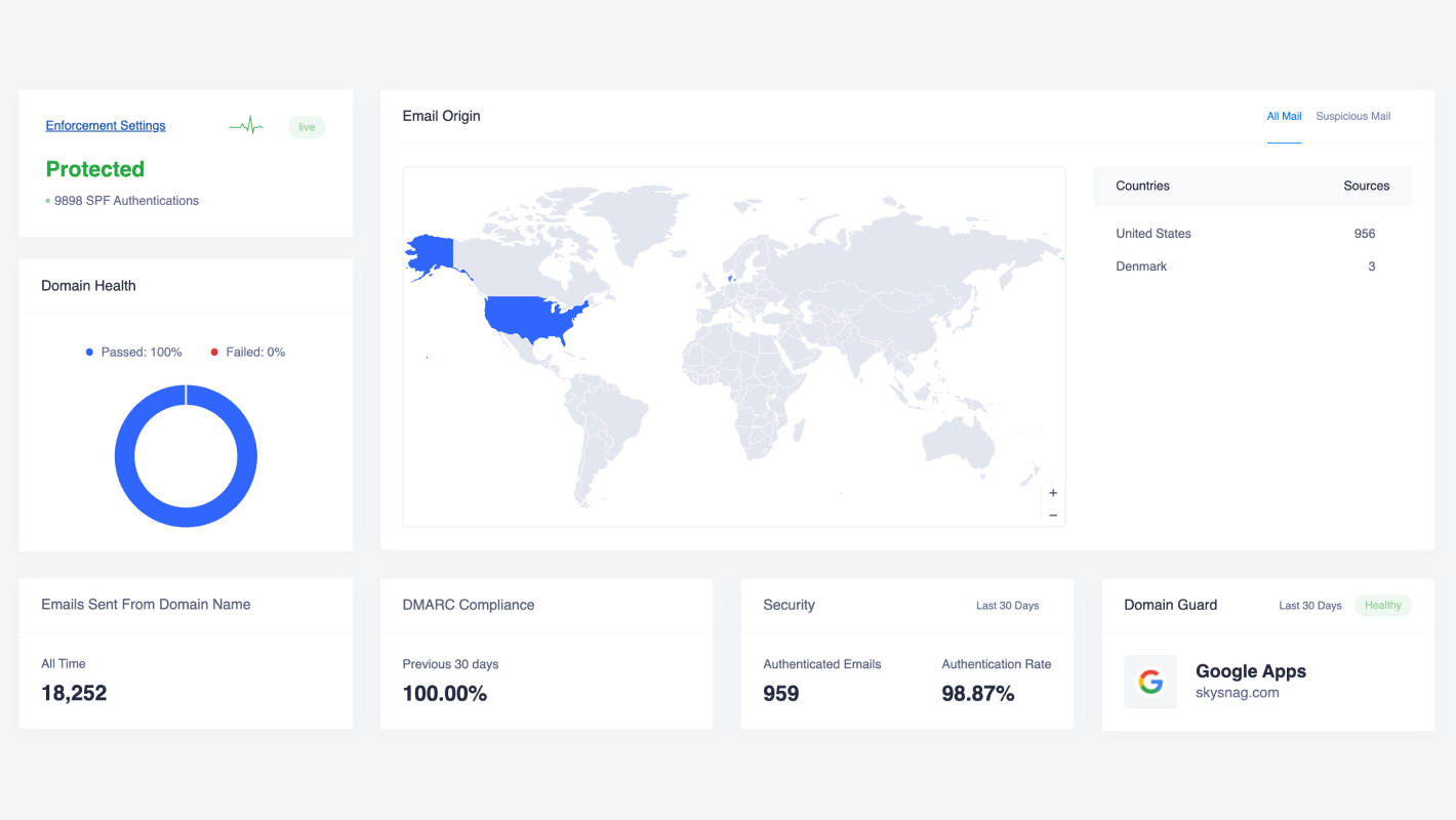 Skysnag provides automated DMARC enforcement and email security, aiming to simplify deliverability.